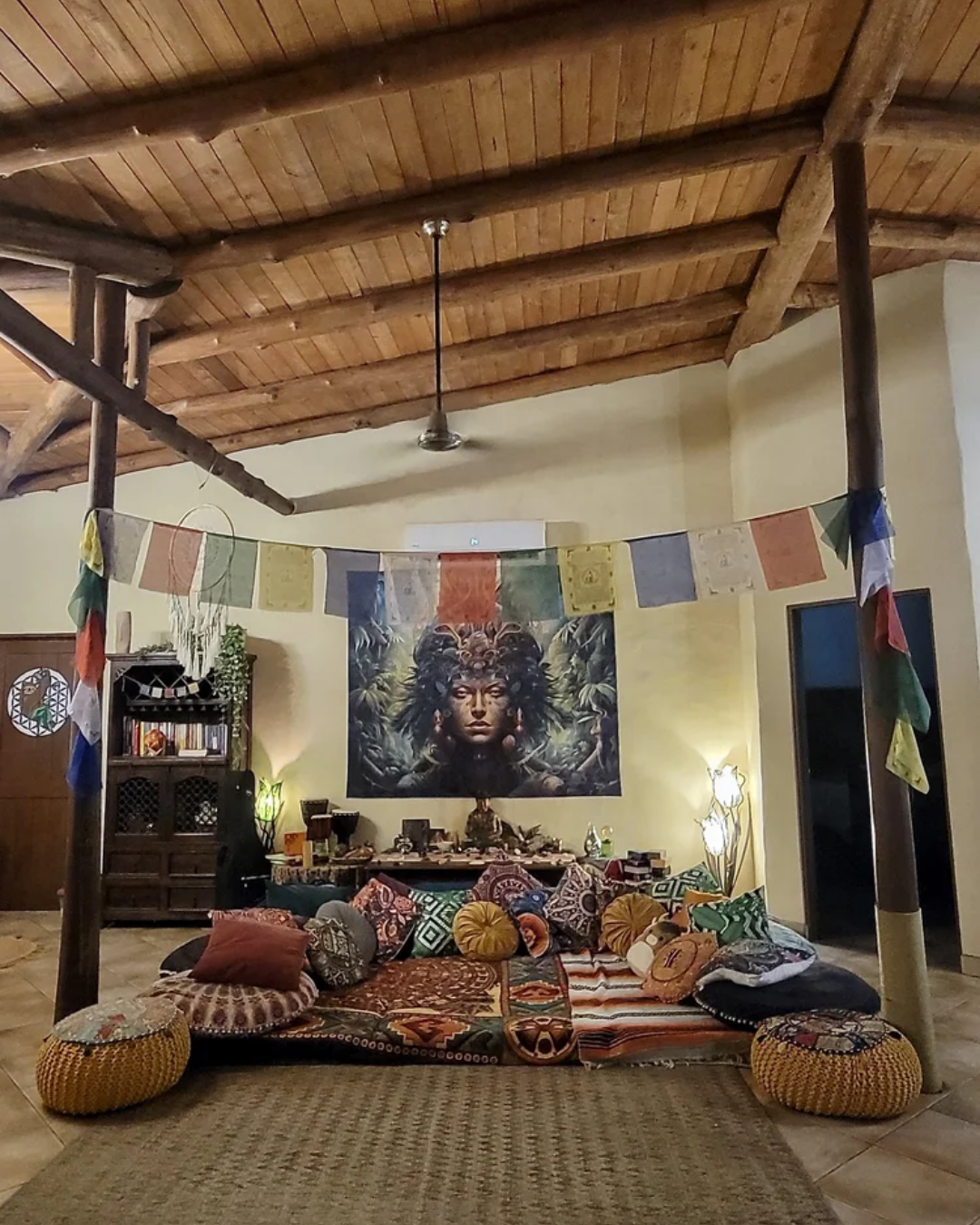 When you enter the gated property and walk into the main “womb” space you are greeted with our famous Squish Zone with tons of pillows and comfort to set the mood. A large altar sits behind the squish zone along with some instruments we leave on site for your enjoyment.