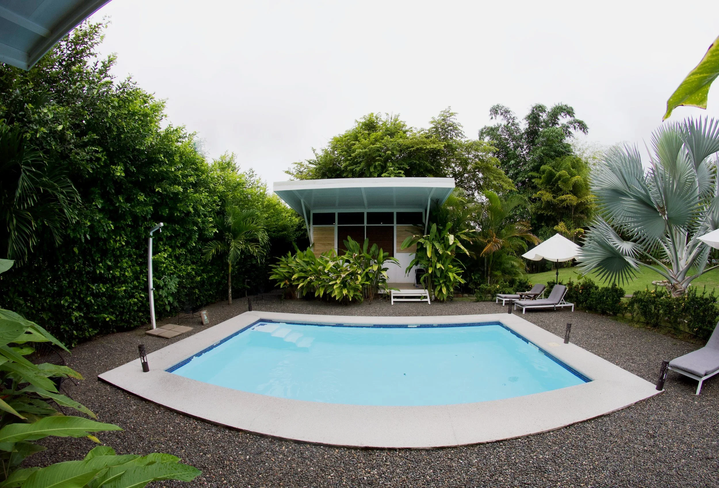 Private Cabina with Queen bed, private bath. Mini fridge and coffee maker. Access to the semi-private pool.